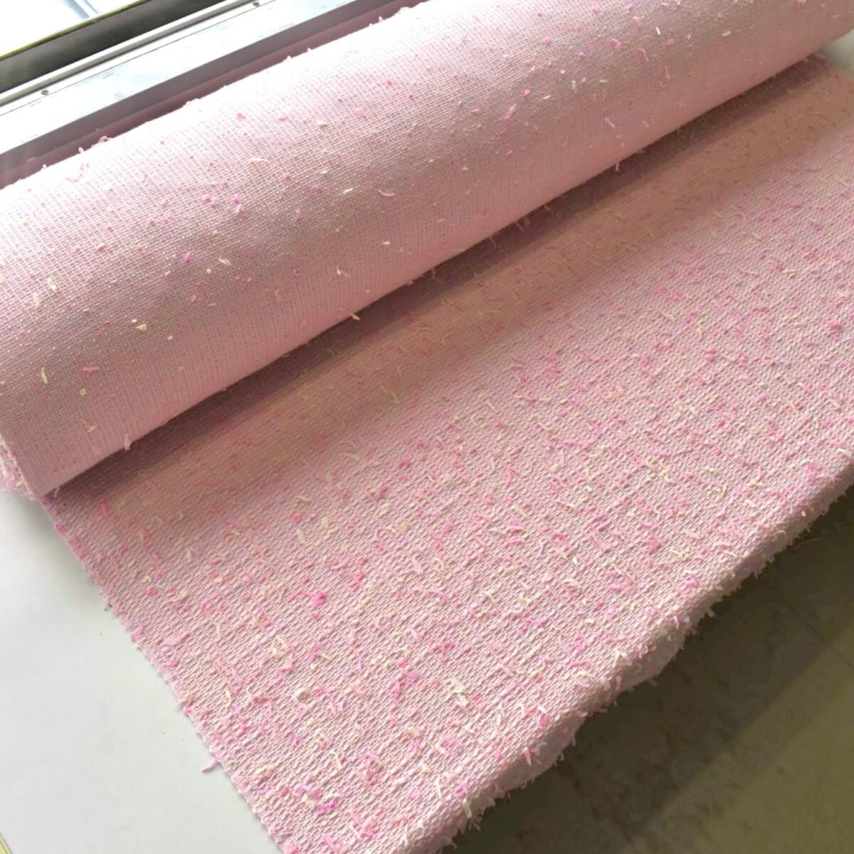 織りも低速のションヘル織機でベテランの職人さんにゆっくりゆっくり織っていただきました。仕上がりのタイミングでたまたまアパレル業界の重鎮のデザイナーさんがご来社されておられたのですが、ご覧になるなり称賛のお言葉をいただきました。